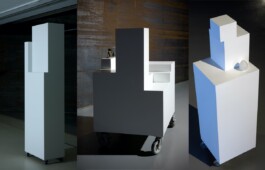 On tour since 2011, twenty-two objects on wheels form an ever-changing installation consisting of artificial tropical plants and oddly shaped pedestals. The pedestals are mostly left empty but occasionally display small sculptures and objects, or alternatively, function as actual pedestals. The Chance Encounters are much like the pawns in a chess game or a collection of decorative elements found in a casino or hotel lobby, or an assembly of large-scale architecture models. The installation is never fixed in its form, changing its configuration as the objects move on their wheels, more often by accident than by decision, the subject of an invisible tide. The works exercise a longstanding, dubious Dutch practice; the policy of toleration. Visitors to the exhibition may move the objects, but they are never encouraged to do so.