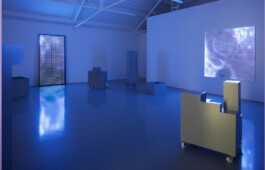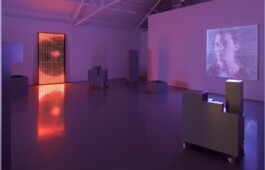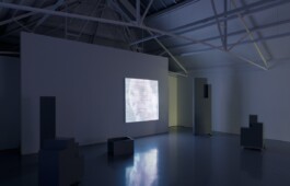 While our eyes try to adjust to the low resolution screen, blinking and looking through our eyelashes in expectation of clarity and narrative understanding, we cannot simply decipher and read these images. Yet, through a process of recognition, trying to find discernable elements from the filmic genre, we project what we know and expect on to the individual film, from one screen to the other in the total installation. In these three films, Lester fetishizes the idea of atmospheric manipulation, by making us regard an image we cannot read, nor with any degree of certainty, describe. Here the speculative nature of the films’ subjects – the alien life forms and the unknown universe – is rendered as visual speculation of and in itself.